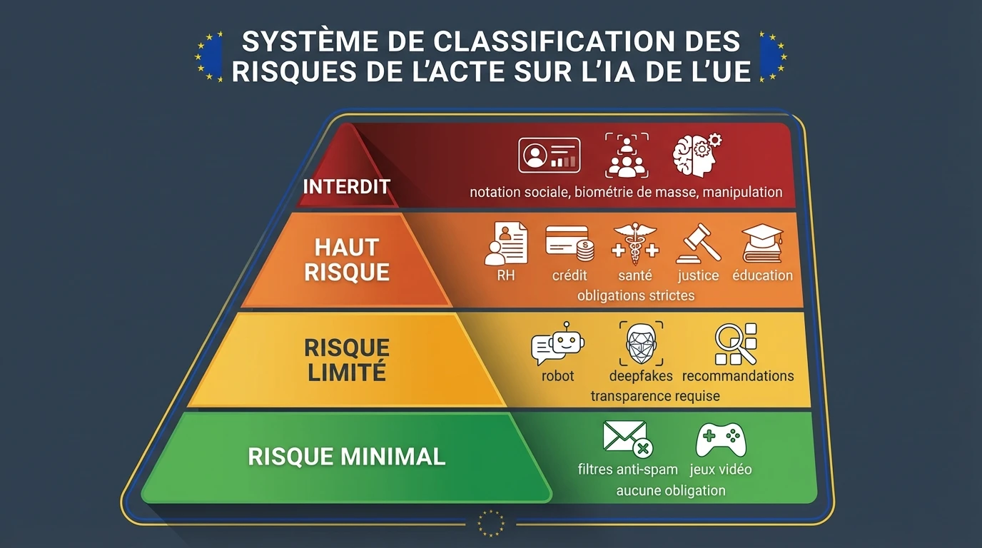 Adopted in March 2024, the AI Act (EU Regulation 2024/1689) is the world's first comprehensive AI regulation. It classifies AI systems into 4 risk levels: