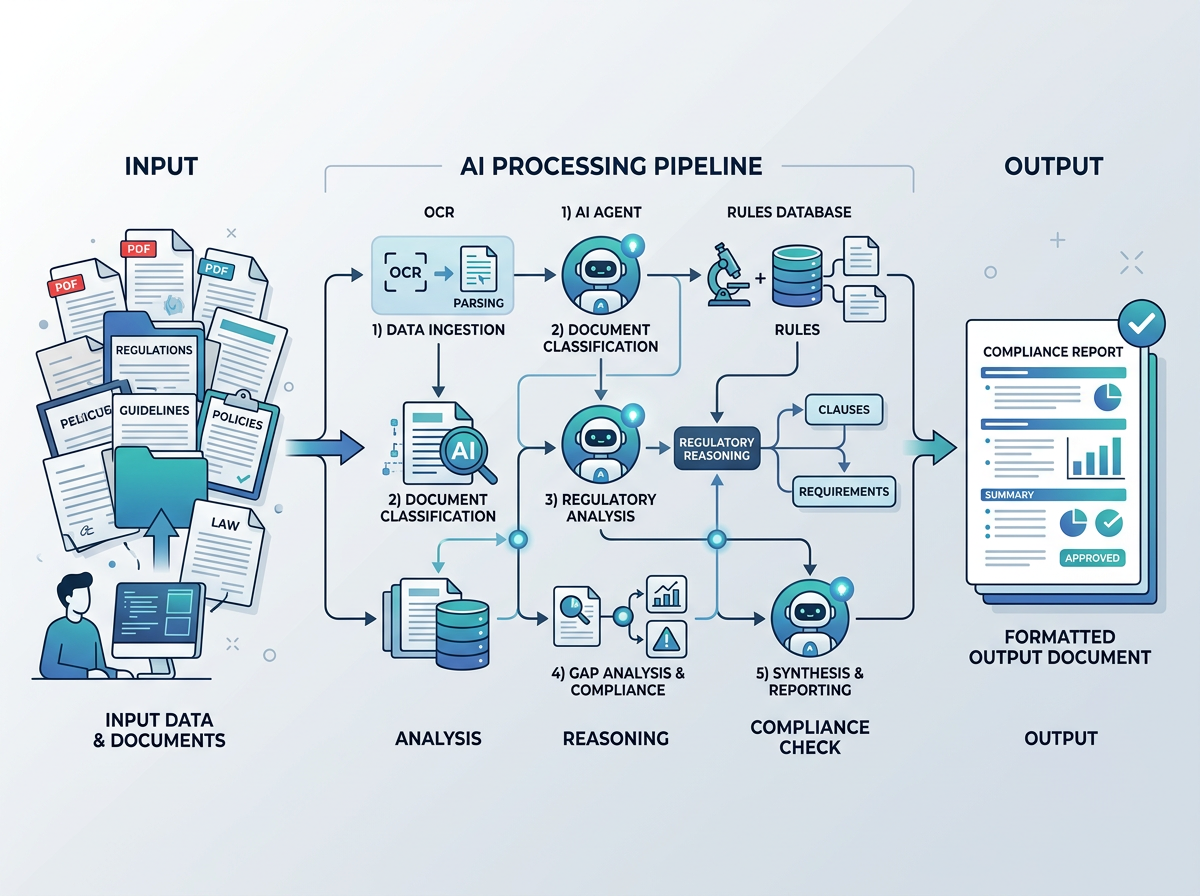 Ce que cela signifie pour une entreprise française : les mêmes principes sont transposables à n'importe quel processus documentaire structuré. Un dossier de demande d'autorisation ICPE, une réponse à un appel d'offres European Structural Funds, un rapport de conformité RGPD ou un dossier de demande de financement BPI France suivent tous des logiques similaires : cadre réglementaire fixe, sections obligatoires, données techniques à intégrer, cohérence interne à assurer. L'IA agentique est exactement l'outil pour ce type de travail.